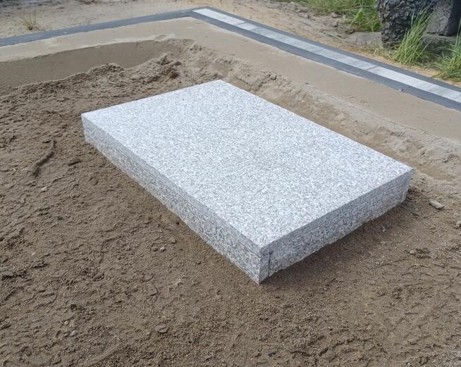 Solidny, granitowy pojemnik nagrobny, który może służyć jako urnowy grobowiec lub element monumentu nagrobnego na ...